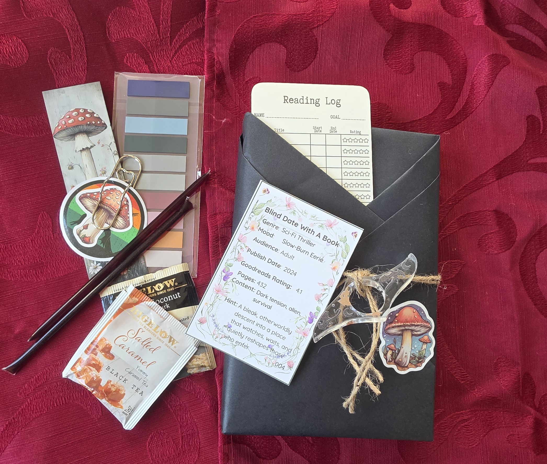 Please note: Extras may vary slightly, but each package is curated with the same Blind Date With A Book attention and care.